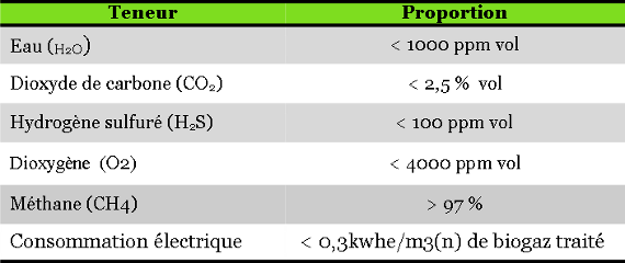 Caractéristique typique du biométhane